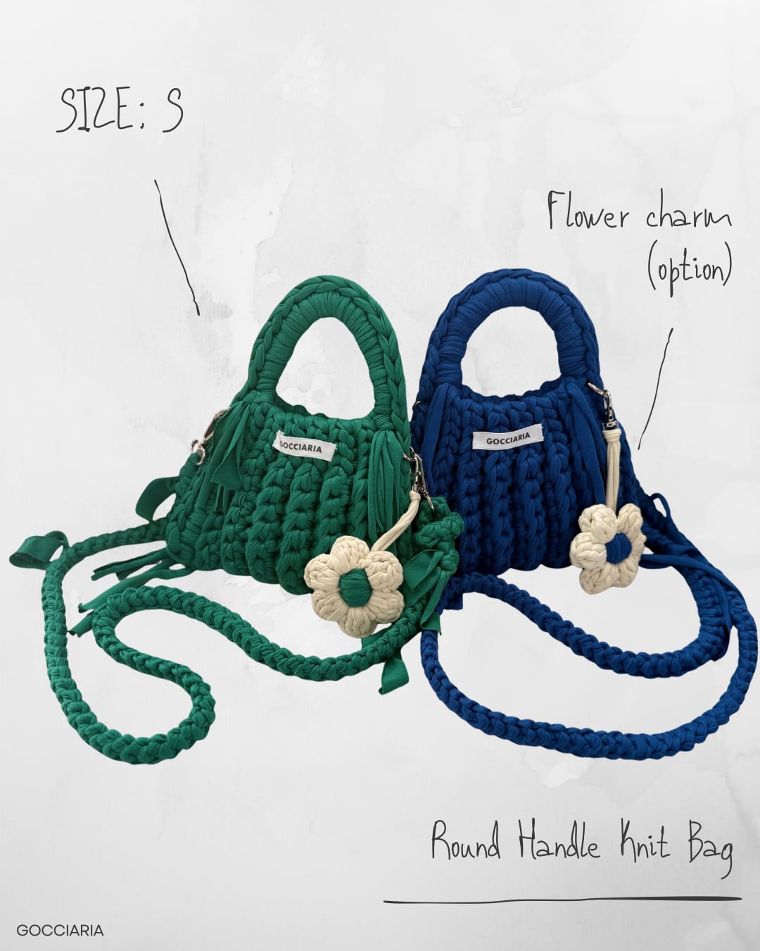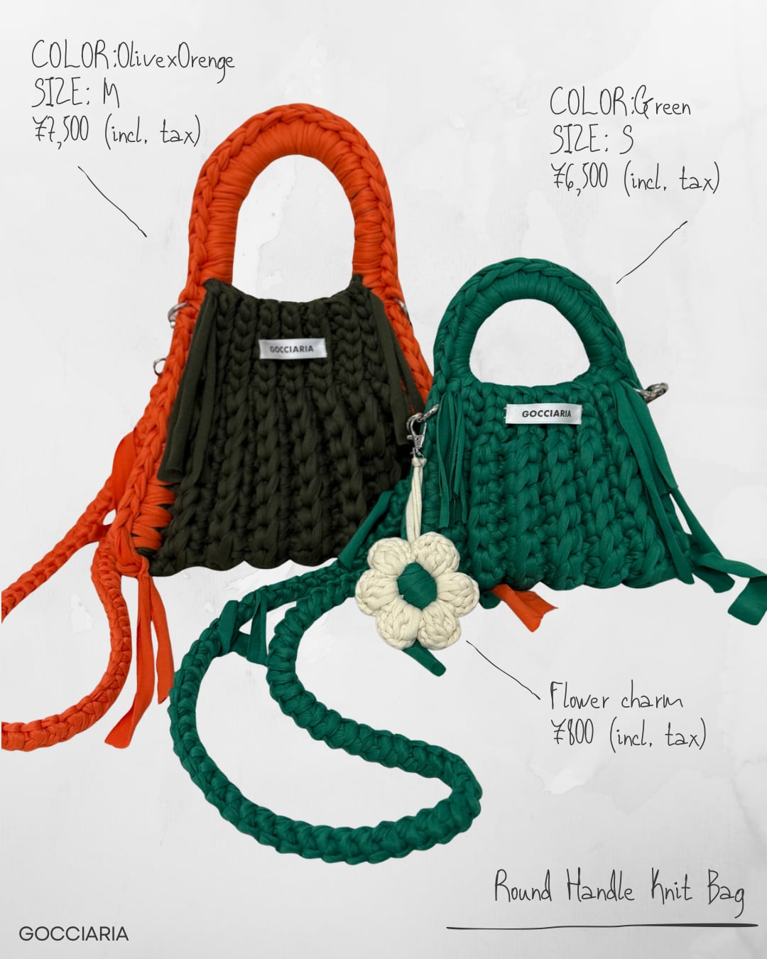 GOCCIARIAが一つひとつ丁寧に編み上げる、ハンドメイドのニットバッグ。